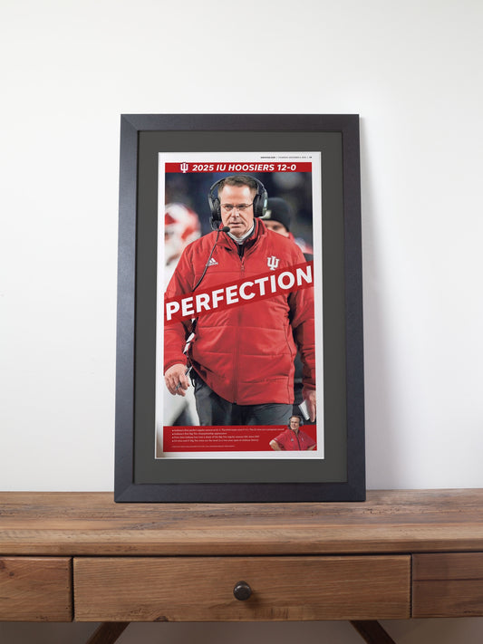 2025 Indiana Hoosiers “PERFECTION” – Curt Cignetti 13–0 Big Ten Champions Framed Newspaper