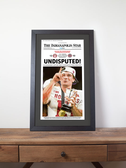 2025 Indiana Hoosiers “Undisputed” – Big Ten Championship Win vs Ohio State Buckeyes Framed Newspaper