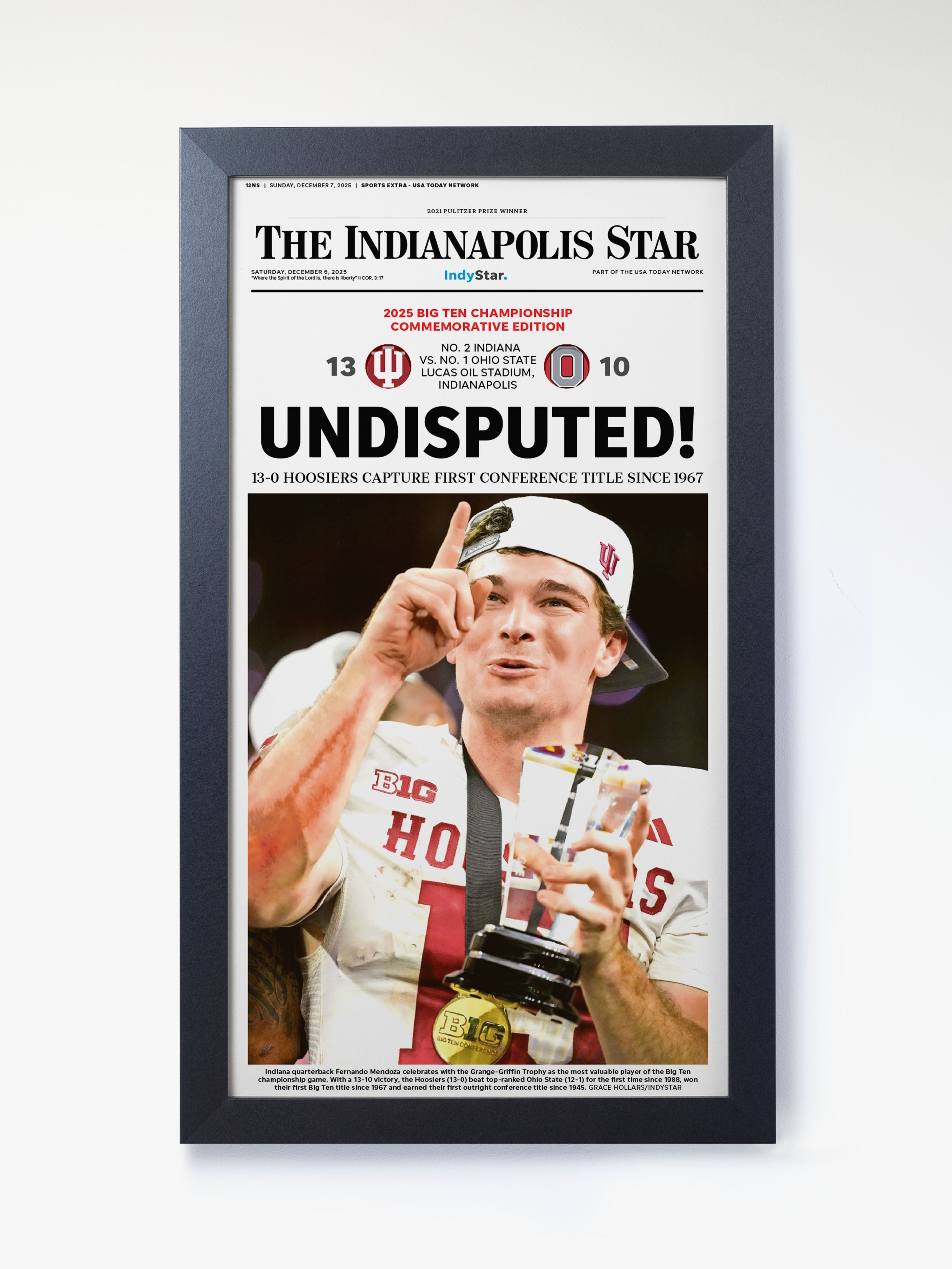 We create premium framed newspapers capturing the defining moments of Indiana and Ohio State — the victories, the heartbreaks, and the Saturdays fans never forget. Every piece is crafted in USA, with museum-level care and materials made to last.